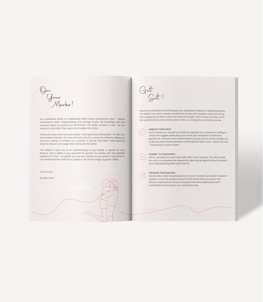 Discover a world of connection with Bonded, your go-to destination for journals, workbooks, games and other unique keepsakes designed to enrich your relationship. Explore our range today and take the first step towards a more fulfilling and connected relationship.